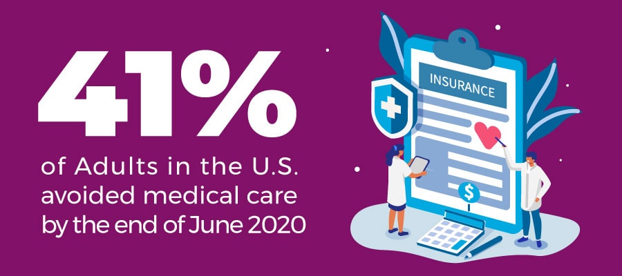 According to the CDC, an estimated 41% of U.S. adults had delayed or avoided medical care, including urgent or emergency care (12%) and routine care (32%) by the end of June 2020viii (Figure 1).