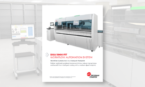 The DxA 5000 Fit is an automation system comprising an integrated input/output module—which can be combined with a coagulation and centrifugation — connect clinical chemistry, immunoassay and hematology instruments.