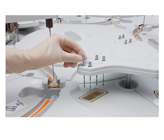 - Complete replacement of sample and reagent probes, mixer bars, ISE and syringes in no more than three steps, no longer than 60 seconds